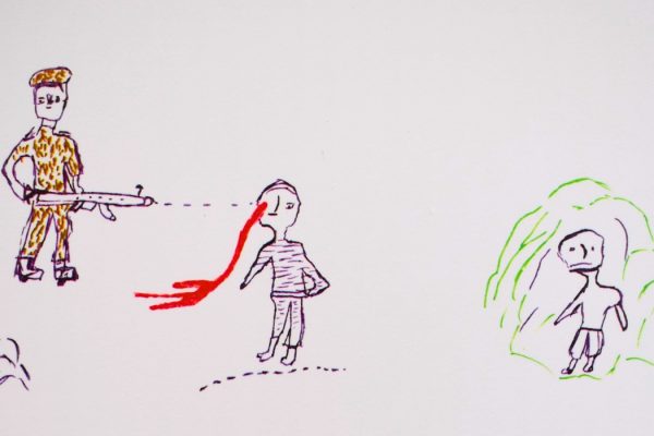 “Dibujar la guerra» es una exposición que muestra esa otra mirada que se le puede dar a los conflictos bélicos, una dónde la realidad se muestra sin filtros, con la sinceridad propia de quienes recién están empezando a ver el mundo.